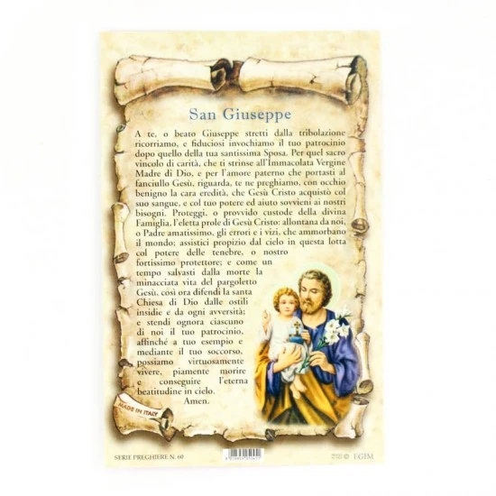 Cartoncino con preghiera a “San Giuseppe” Made in Italy