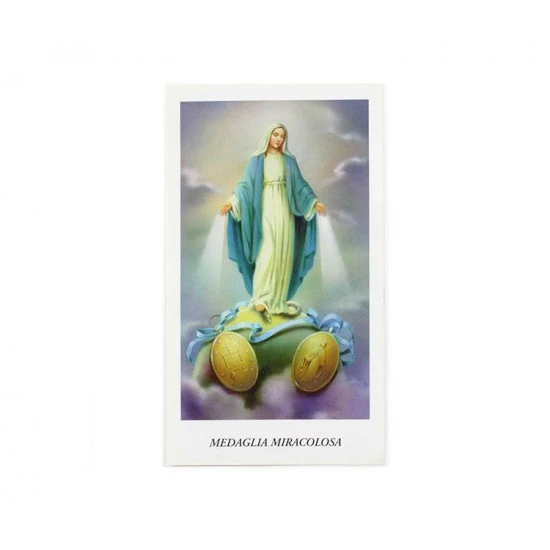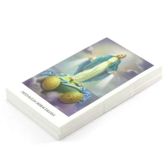 Confezione da 100 santini immagine della Medaglia Miracolosa in carta semplice con retro preghiera. Made in italy.