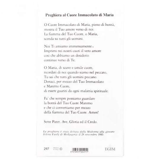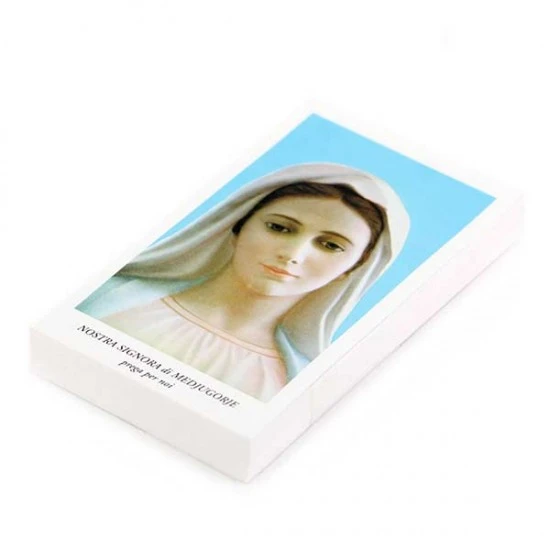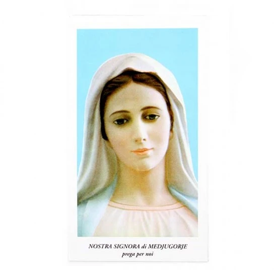 Immagine Nostra Signora di Medjugorje in carta semplice con preghiera sul retro. Made in italy.