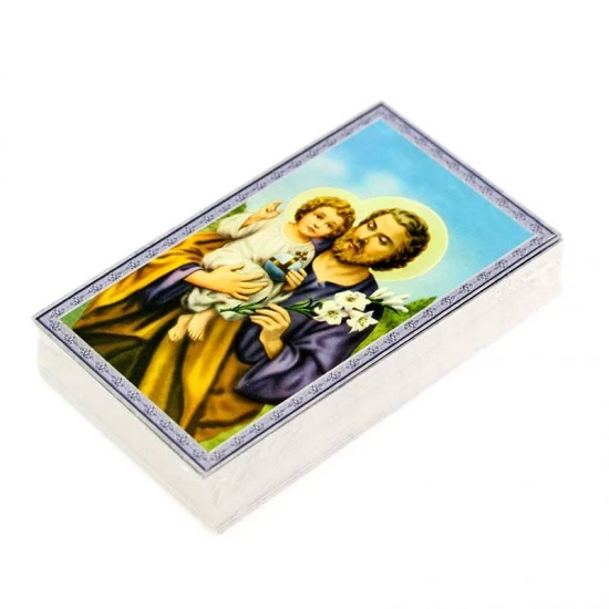 Confezione da 100 immagini in cartoncino raffiguranti San Giuseppe. Il retro dell’immagine è bianco senza scritta. Made in Italy