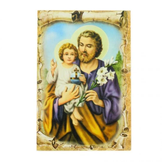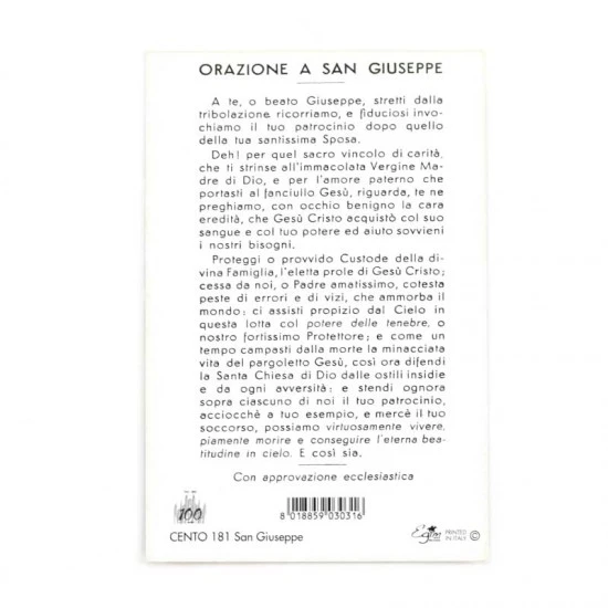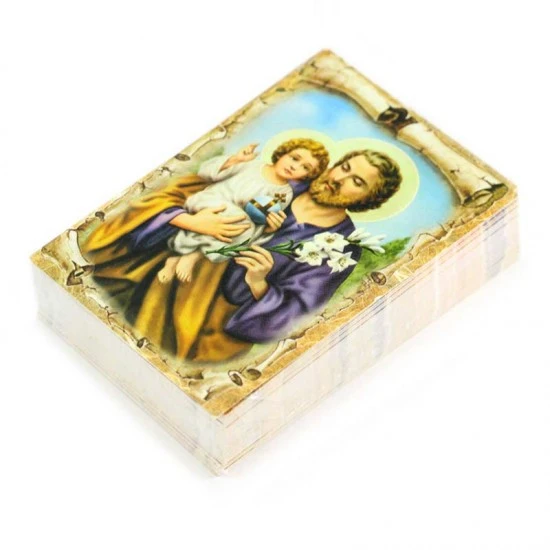 Confezione da 100 immagini in cartoncino raffiguranti San Giuseppe con stampa sul retro della preghiera al Santo. Made in Italy