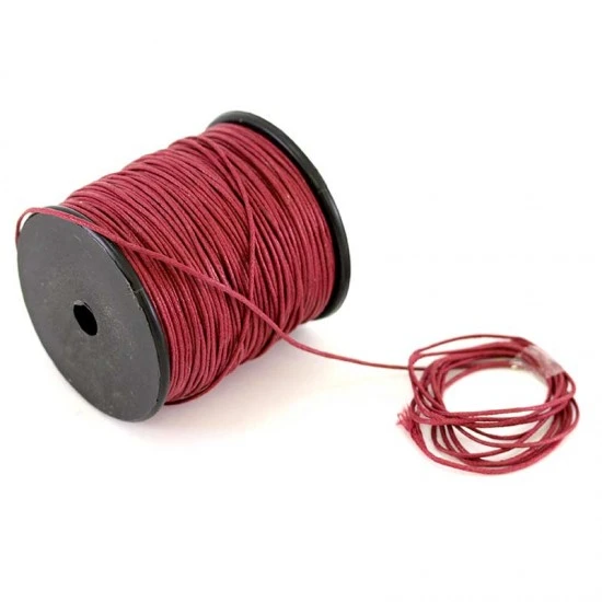 Laccio cerato morbido di colore rosso rubino. Lunghezza della bobina, 100 metri.