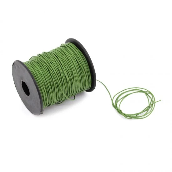 Laccio cerato morbido di colore verde oliva. Lunghezza della bobina 100 metri.