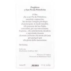 Immagine San Pio Da Pietrelcina Con Preghiera 6×11 Cm Pz 100