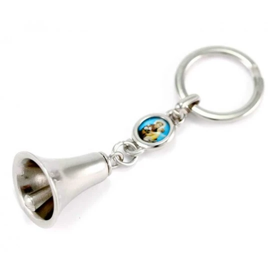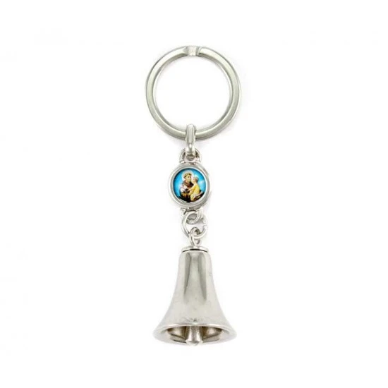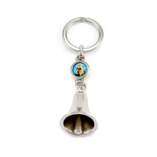 Portachiavi Sant’Antonio realizzato in metallo argentato nikel con campanellino pendente e munito di gancio ad anello molto resistente. Made in Italy