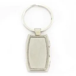 Portachiavi curvo realizzato interamente in metallo nichelato, munito di gancio ad anello molto resistente. Fornito in elegante scatola sagomata in cartone rosso.