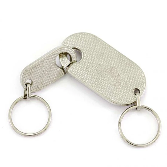 Portachiavi realizzato in metallo argentato ossidato munito di due ganci ad anello sganciabili. Prodotto di grande utilità e molto resistente. Made in Italy