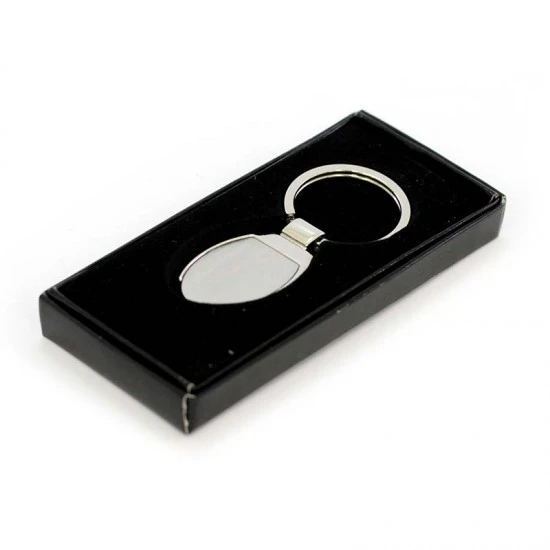Portachiavi goccia realizzato interamente in metallo argentato, munito di gancio ad anello molto resistente. Fornito in elegante scatola sagomata di cartone nero.