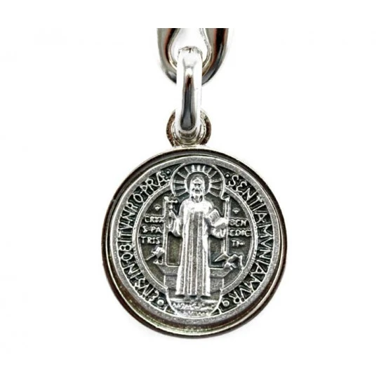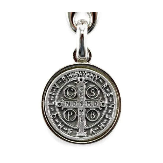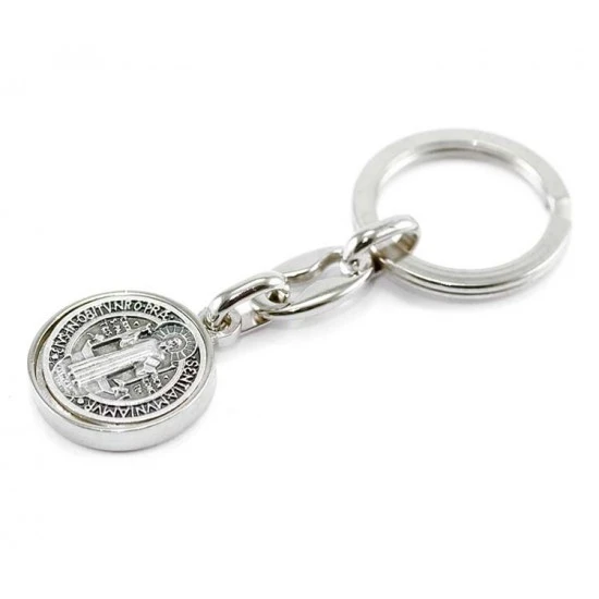 Portachiavi San Benedetto realizzato in metallo argentato, munito di gancio ad anello molto resistente. Made in Italy