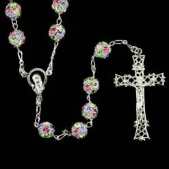 Rosario Argento Grani In Cristallo Multicolore Grano 8 Mm