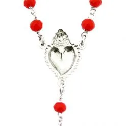 Rosario Argento E Vetro Rosso Grano 4 Mm