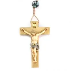 Rosario Nero Con Crocifisso In Legno Colorato Grano 8 Mm