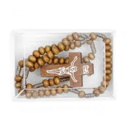 Rosario In Legno Naturale Legatura Seta Grano 6 Mm