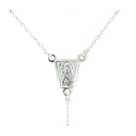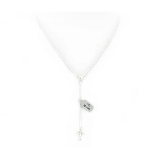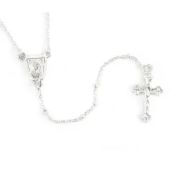 Rosario con grani tondi e lisci in argento 925°°, munito di gancio a molla utile per essere indossato.