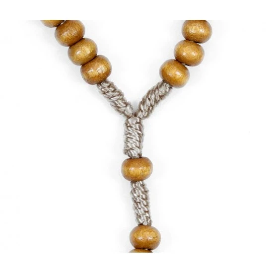 Rosario Francescano con grani in legno tondi e legatura in spago.