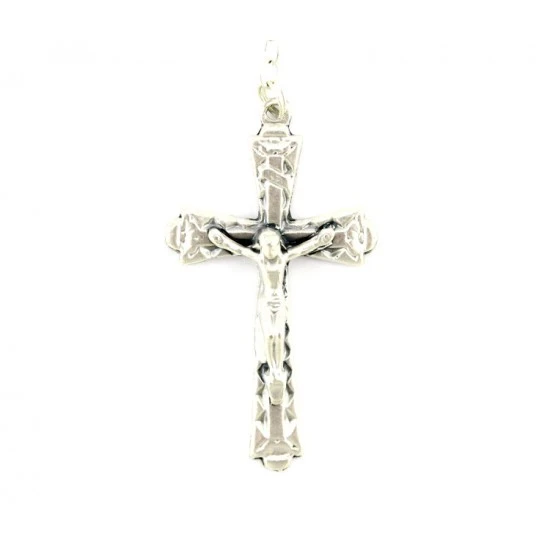 Rosario Lacrime della Madonna realizzato con grani tondi in vetro variegato, la legatura, il crocifisso e la crociera sono in metallo argentato.