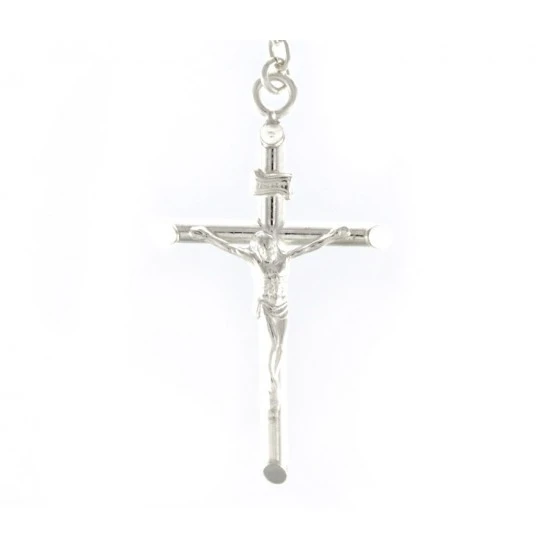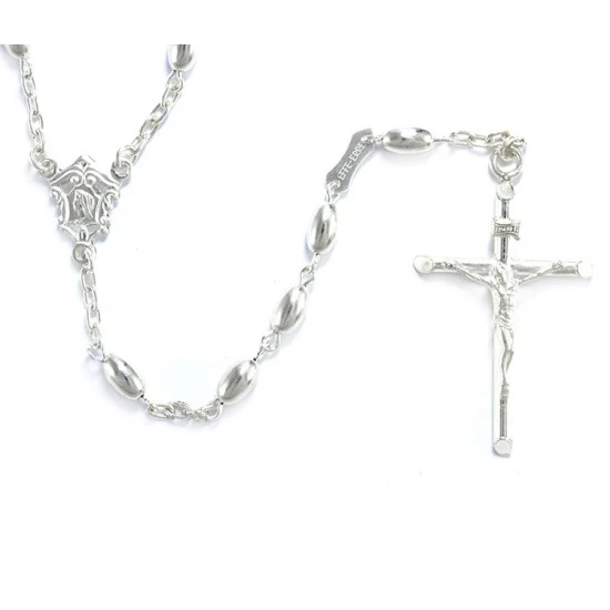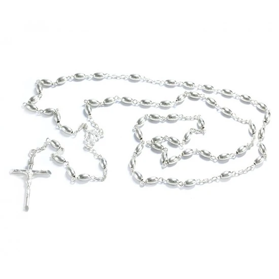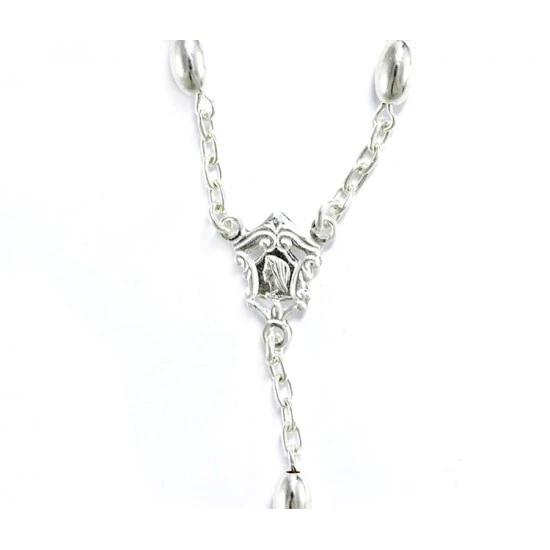 Rosario con grano ovale e liscio in argento 800°°, può essere indossato comodamente.