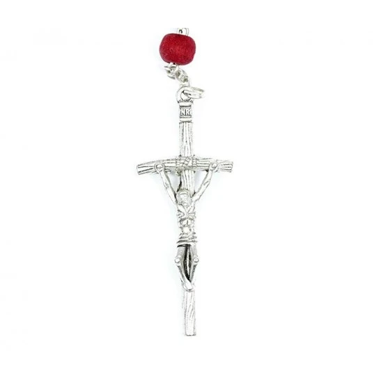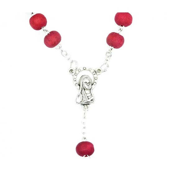 Rosario di Santa Rita con grani tondi in legno profumato. La legatura, il crocifisso e la crociera sono in metallo argentato.