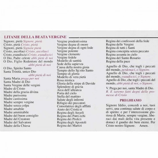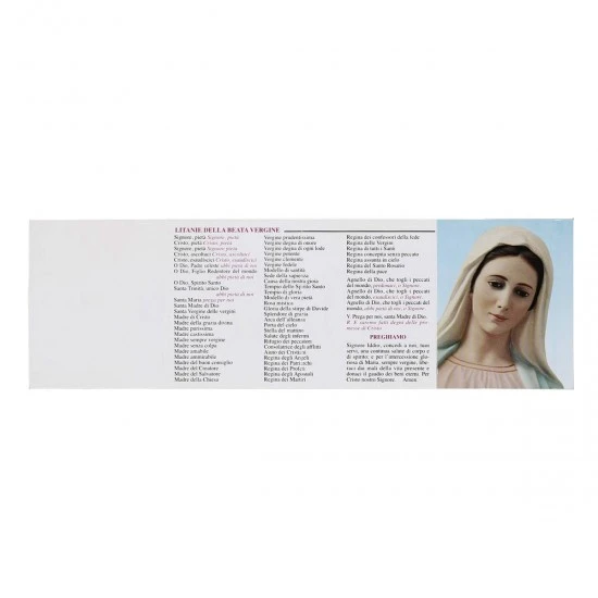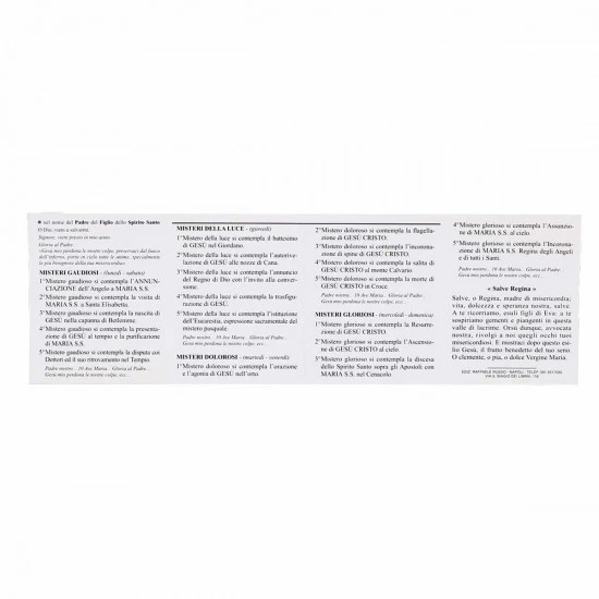 Santo Rosario pieghevole in cartoncino con la raffigurazione del volto della Madonna, le litanie e i misteri. Made in italy
