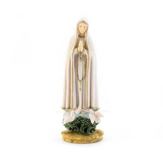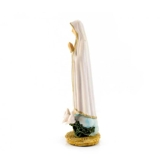 Statua Madonna di Fatima con colombe realizzata in pvc colorato con colori indelebili. Made in Italy