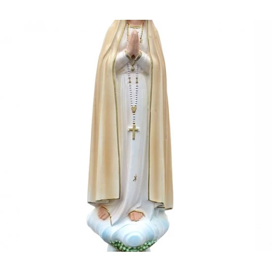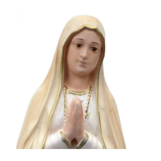 Statua Madonna di Fatima realizzata interamente in resina dipinta a mano con colori indelebili. Produzione artigianale eseguita in un piccolo laboratorio dalla grande esperienza nella lavorazione di tutte le sculture sacre, questi artigiani curano ogni pezzo con la massima attenzione e cura per tutti i particolari al fine di rendere ogni opera unica ed originale. Made in Italy