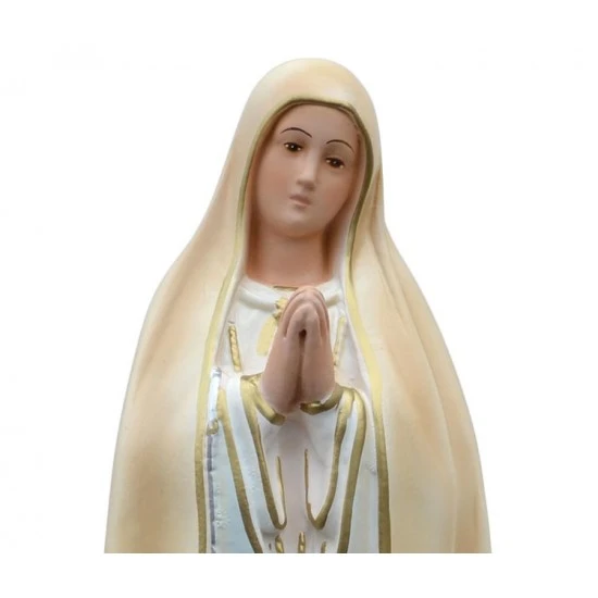 Statua Madonna di Fatima realizzata interamente in resina dipinta a mano con colori indelebili. Produzione artigianale eseguita in un piccolo laboratorio dalla grande esperienza nella lavorazione di tutte le sculture sacre, questi artigiani curano ogni pezzo con la massima attenzione e cura per tutti i particolari al fine di rendere ogni opera unica ed originale. Made in italy
