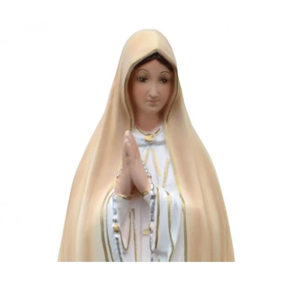 Statua Madonna di Fatima realizzata interamente in resina dipinta a mano con colori indelebili. Produzione artigianale eseguita in un piccolo laboratorio dalla grande esperienza nella lavorazione di tutte le sculture sacre, questi artigiani curano ogni pezzo con la massima attenzione e cura per tutti i particolari al fine di rendere ogni opera unica ed originale. Made in Italy
