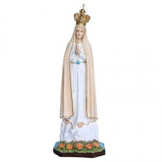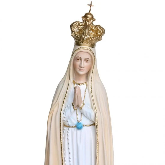 Statua Madonna di Fatima realizzata interamente in resina dipinta a mano con colori indelebili. Produzione artigianale eseguita in un piccolo laboratorio dalla grande esperienza nella lavorazione di tutte le sculture sacre, questi artigiani curano ogni pezzo con la massima attenzione per tutti i particolari al fine di rendere ogni opera unica ed originale. Made in Italy