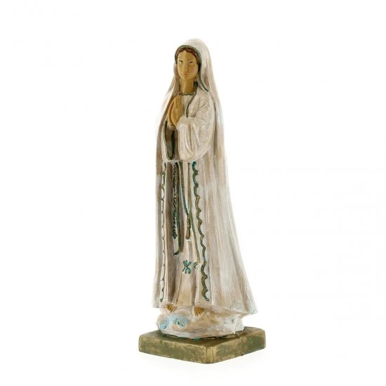 Statua Madonna di Fatima realizzata in polietilene colorato effetto legno. Prodotto di buona fattura adatto anche per esterno. Made in Italy