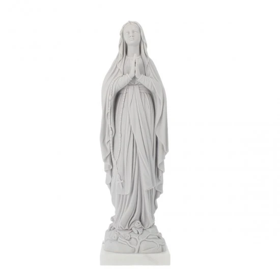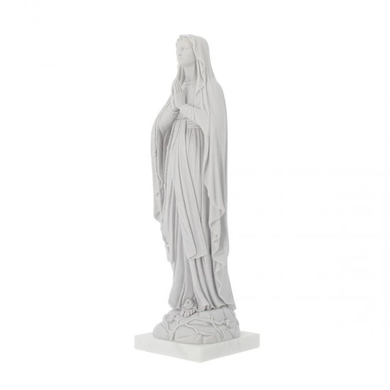 Statua Madonna di Lourdes realizzata in polvere di alabastro e resina. Produzione artigianale eseguita con molta cura per i particolari in un laboratorio specializzato di grande esperienza nella lavorazione di sculture sacre. Confezionata in scatola di polistirolo con imballaggio sicuro per il trasporto. Made in Italy
