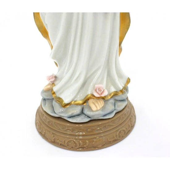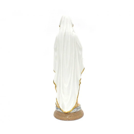 Statua Madonna di Lourdes realizzata in porcellana lucida con colori tenui e delicati. Viene fornita completa di scatola.