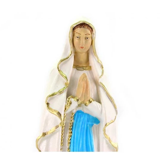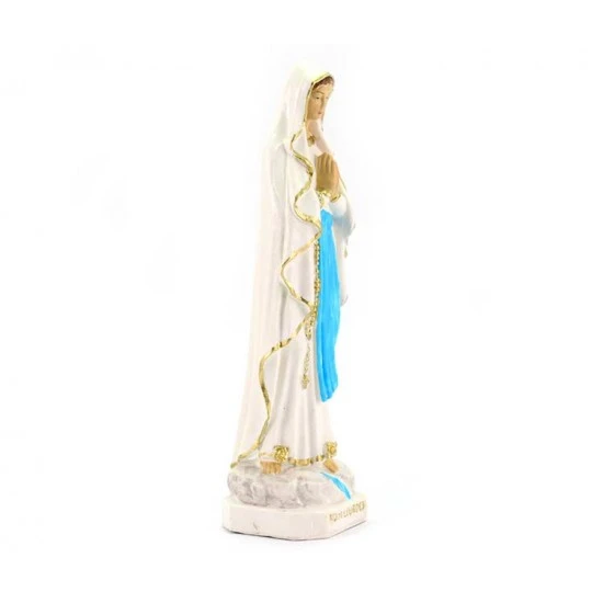 Statua Madonna di Lourdes realizzata in pvc colorata. Confezionata in bustina trasparente. Made in Italy