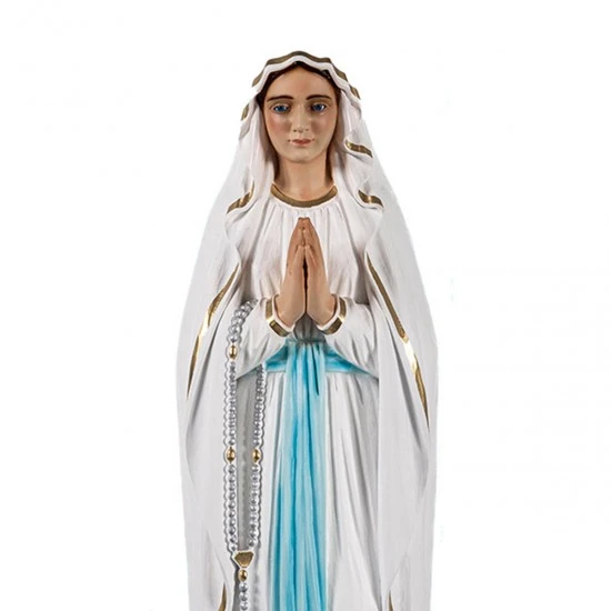 Statua Madonna di Lourdes, realizzata interamente in resina e dipinta a mano con colori indelebili e resistenti alle intemperie. Produzione artigianale eseguita in un piccolo laboratorio dalla grande esperienza nella lavorazione di tutte le sculture sacre, questi artigiani curano ogni pezzo con la massima attenzione e cura per i particolari al fine di rendere ogni opera unica ed originale. Made in Italy