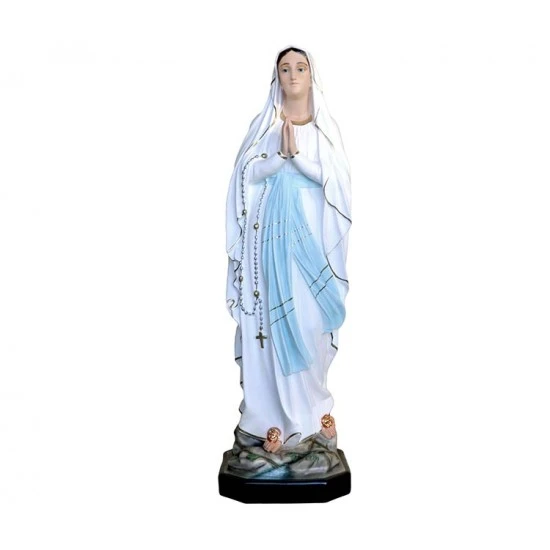 Statua Madonna di Lourdes, realizzata interamente in resina e dipinta a mano con colori indelebili e resistenti alle intemperie. Produzione artigianale eseguita in un piccolo laboratorio dalla grande esperienza nella lavorazione di tutte le sculture sacre, questi artigiani curano ogni pezzo con la massima attenzione e cura per i particolari al fine di rendere ogni opera unica ed originale. Made in Italy
