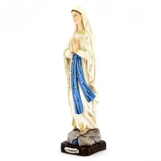 Statua Madonna di Lourdes realizzata in resina dipinta a mano con colori indelebili. Lavorazione artigianale eseguita in un piccolo laboratorio con grande esperienza nella produzione di sculture sacre. Prodotto adatto anche per esterno. Confezionata in scatola di cartone. Made in Italy