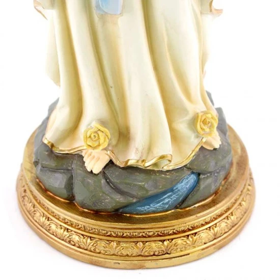 Statua Madonna di Lourdes realizzata interamente in resina colorata. Prodotto di ottima fattura e ben rifinito nei particolari, fornita confezionata in elegante scatola di cartone.