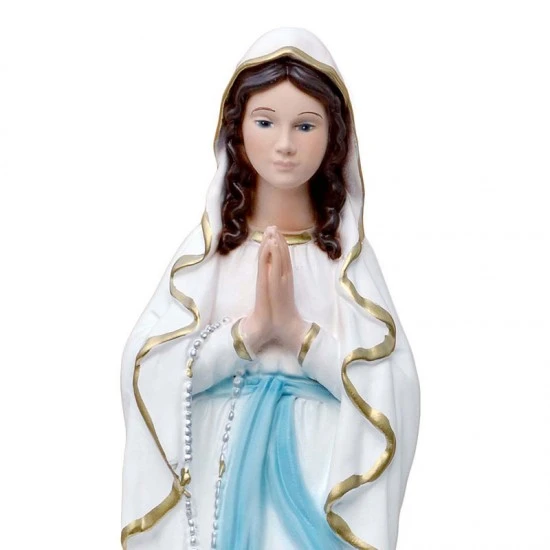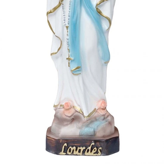 Statua Madonna di Lourdes realizzata interamente in resina e dipinta a mano con colori indelebili e resistenti alle intemperie. Produzione artigianale eseguita in un piccolo laboratorio dalla grande esperienza nella lavorazione di sculture sacre, questi artigiani curano ogni pezzo con la massima attenzione e cura per i particolari al fine di rendere ogni opera unica ed originale. Prodotto spedito con scatola di cartone ben confezionato con imballaggio sicuro per il trasporto. Made in Italy