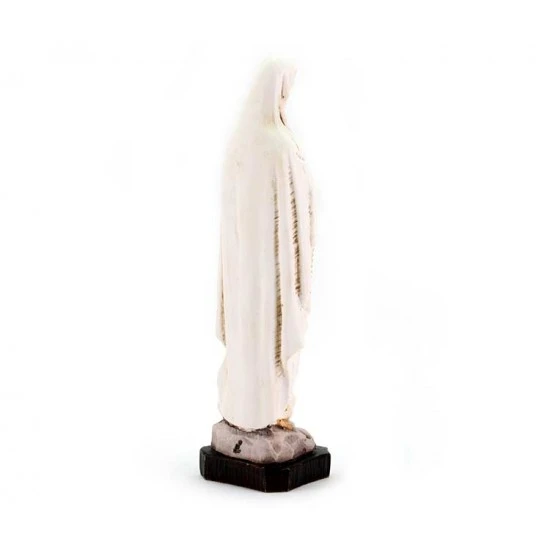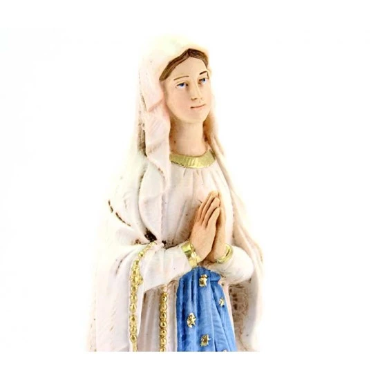 Statua Madonna di Lourdes realizzata in resina piena colorata. Confezionata in scatola di cartone.