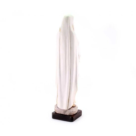 Statua Madonna di Lourdes realizzata in resina dipinta a mano con colori indelebili. Lavorazione artigianale eseguita in un piccolo laboratorio con grande esperienza nella produzione di sculture sacre. Prodotto adatto anche per esterno. Confezionata in scatola di cartone. Made in Italy