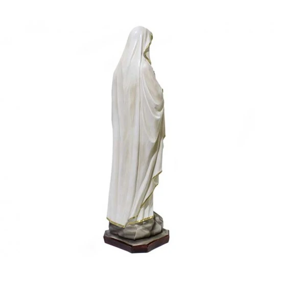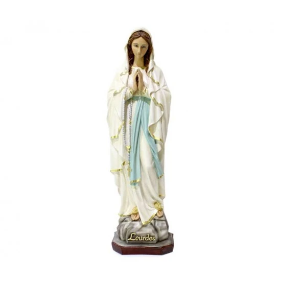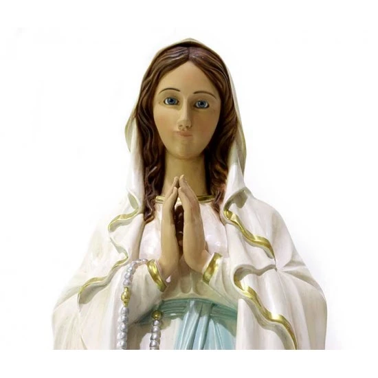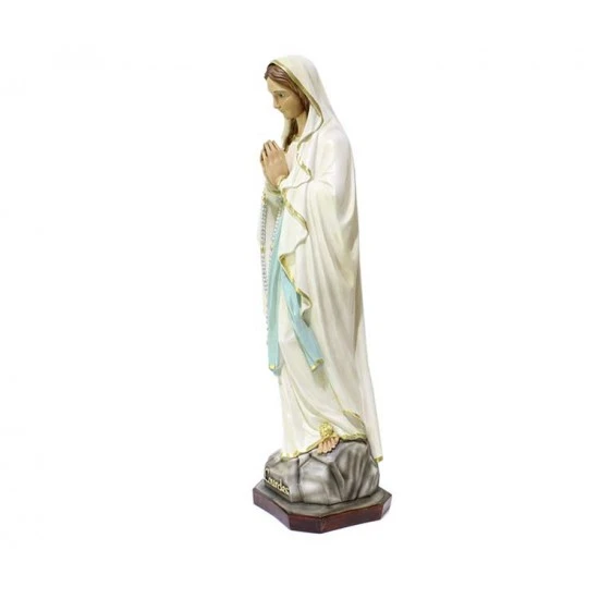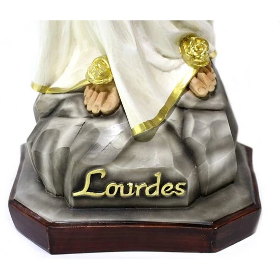 Statua Madonna di Lourdes, realizzata interamente in resina con occhi in vetro e dipinta a mano con colori indelebili e resistenti alle intemperie. Produzione artigianale eseguita in un piccolo laboratorio dalla grande esperienza nella lavorazione di tutte le sculture sacre, questi artigiani curano ogni pezzo con la massima attenzione e cura per i particolari al fine di rendere ogni opera unica ed originale. Made in Italy