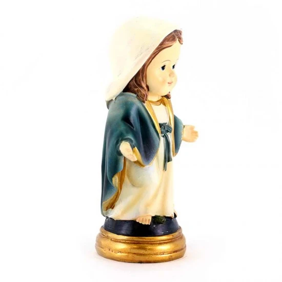 Statua Madonna Immacolata baby realizzata interamente in resina colorata. Simpatica statua espressamente disegnata con un’iconografia adatta ai bambini. Confezionata in scatola di cartone.