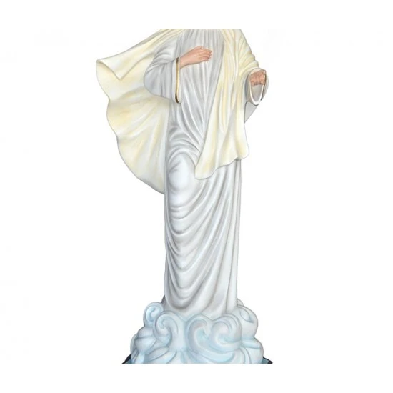 Statua Madonna Medjugorje realizzata interamente in VETRORESINA e dipinta a mano con colori indelebili. Produzione artigianale eseguita in un piccolo laboratorio dalla grande esperienza nella lavorazione di tutte le sculture sacre, questi artigiani curano ogni pezzo con la massima attenzione e cura per i particolari al fine di rendere ogni opera unica ed originale. Made in Italy