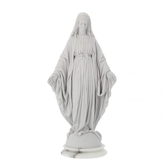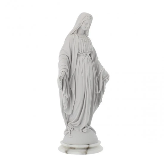 Statua Madonna Miracolosa realizzata in polvere di alabastro e resina. Produzione artigianale eseguita con molta cura per i particolari in un laboratorio specializzato di grande esperienza nella lavorazione di sculture sacre. Confezionata in scatola di polistirolo con imballaggio sicuro per il trasporto. Made in Italy