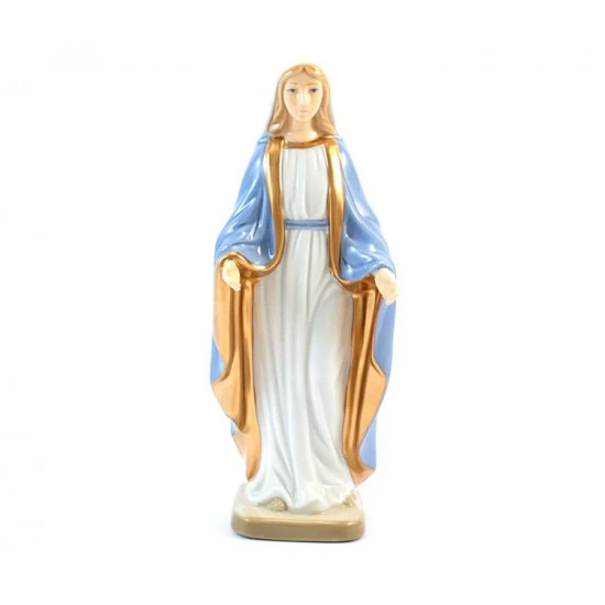 Statua Madonna Miracolosa realizzata in porcellana lucida con colori tenui e delicati. Viene fornita completa di scatola.