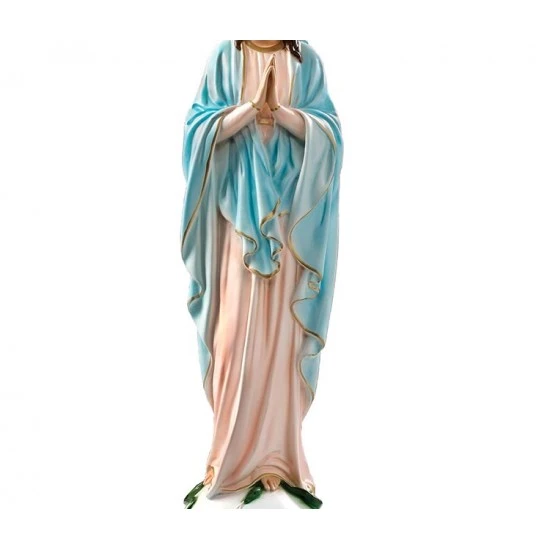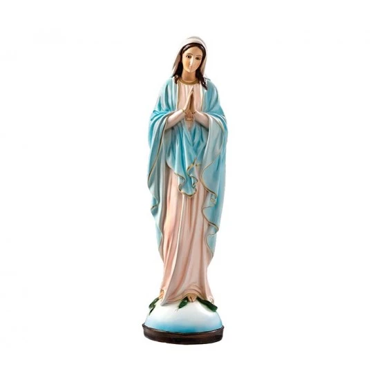 Statua Madonna Miracolosa con mani giunte realizzata interamente in resina e dipinta a mano con colori indelebili. Produzione artigianale eseguita in un piccolo laboratorio dalla grande esperienza nella lavorazione di tutte le sculture sacre, questi artigiani curano ogni pezzo con la massima attenzione e cura per i particolari al fine di rendere ogni opera unica ed originale. Made in Italy