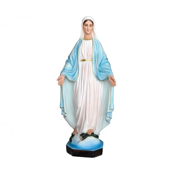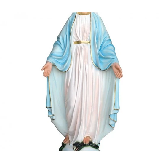 Statua Madonna Miracolosa realizzata interamente in resina e dipinta a mano con colori indelebili. Produzione artigianale eseguita in un piccolo laboratorio dalla grande esperienza nella lavorazione di tutte le sculture sacre, questi artigiani curano ogni pezzo con la massima attenzione e cura per i particolari al fine di rendere ogni opera unica ed originale. Made in Italy