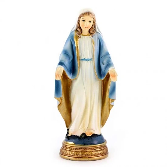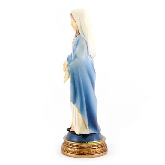 Statua Madonna Miracolosa realizzata interamente in resina colorata. Prodotto fornito in scatola di cartone.