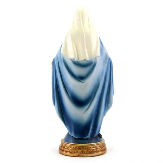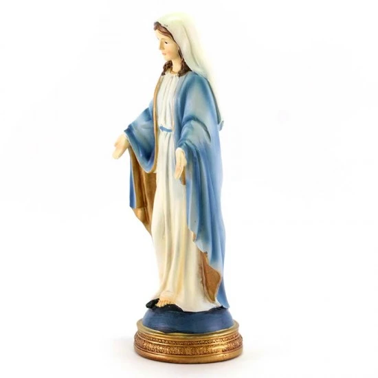Statua Madonna Miracolosa realizzata interamente in resina colorata. Prodotto di ottima fattura e ben rifinito nei particolari, fornita confezionata in elegante scatola di cartone.