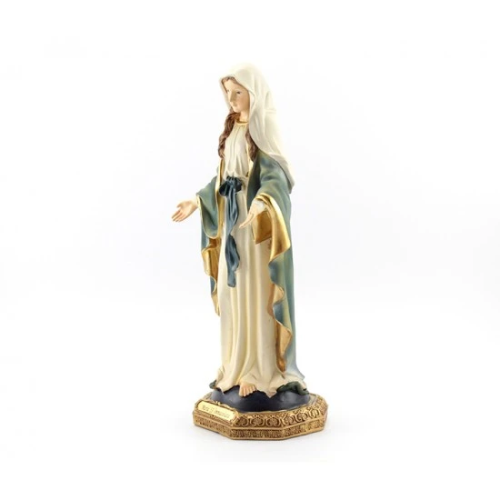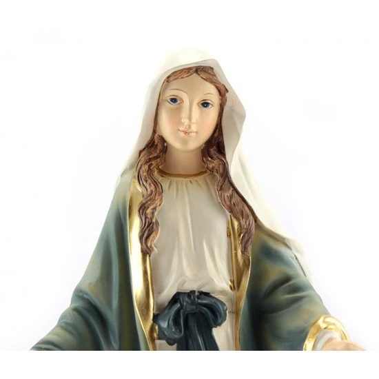 Statua Madonna Miracolosa realizzata in resina piena con colorazione effetto legno. Fornita con scatola.