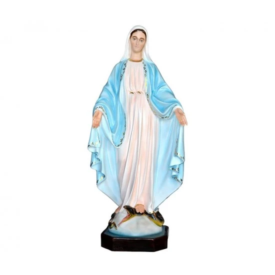 Statua Madonna Miracolosa realizzata interamente in resina e dipinta a mano con colori indelebili. Produzione artigianale eseguita in un piccolo laboratorio dalla grande esperienza nella lavorazione di tutte le sculture sacre, questi artigiani curano ogni pezzo con la massima attenzione e cura per i particolari al fine di rendere ogni opera unica ed originale. Made in Italy